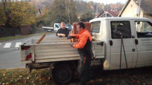 Dnes jsme vyklidili „harampádí“ a nyní začneme s úpravou a úklidem prostoru. Moc děkujeme Veřejným službám za pomoc.